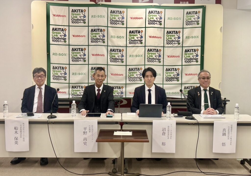 2050年カーボンニュートラルの実現に向け、「県内中小企業1,000社の参画、合計10万トンのCO₂削減」を目指すプロジェクト「アキタグリーンリンクチャレンジ1000」に関する記者会見が行われました。